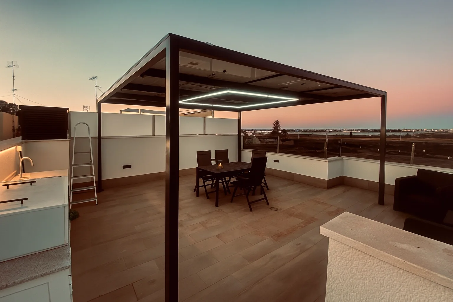 Para proyectos arquitectónicos de alta gama, PRO SOLAR PERGOLA también aparece en búsquedas como: pérgola solar, gazebo con techo solar, instalación de gazebo solar, marquesina solar en azotea, soluciones solares para aparcamientos, sistema solar para parking, estructura solar para parking y parking solar fotovoltaico. Incluye desde jardines privados hasta centros comerciales, resorts, villas y proyectos industriales.